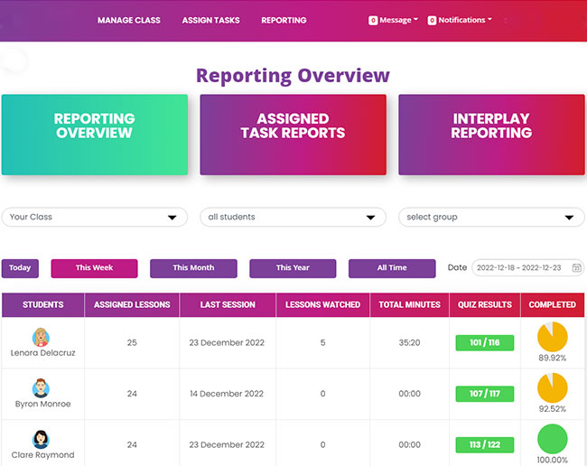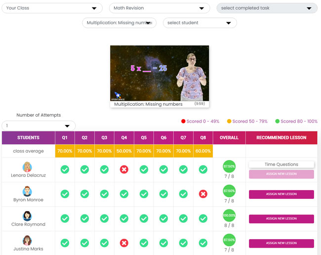 Lessons can be assigned for in class activities and homework tasks which is great for students to use for revision reinforcing what they’ve learnt in the classroom.